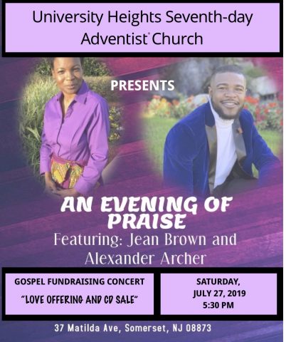 Women's Ministries is sponsoring an Evening of Praise Gospel Concert, Saturday, July 27th @ 5:30pm.